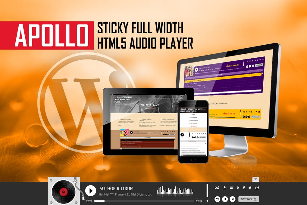 - 响应式设计 -音频播放器可用于响应式网站。这是一个全角播放器,它将覆盖父div宽度。