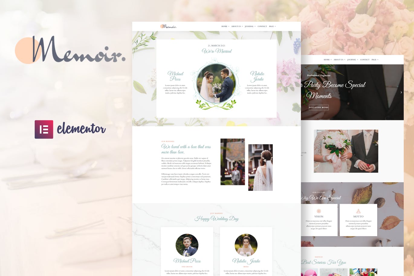 Memoir 是浪漫而美丽的婚礼模板套件,适用于婚礼活动组织者和相关服务。它有 12 个预建模板,具有酷炫的设计和现代风格。您还可以将此创意模板套件用于与婚礼和派对相关的任何类型的企业或服务,例如婚礼组织者、婚礼照片、婚礼请柬甚至生日派对组织者。