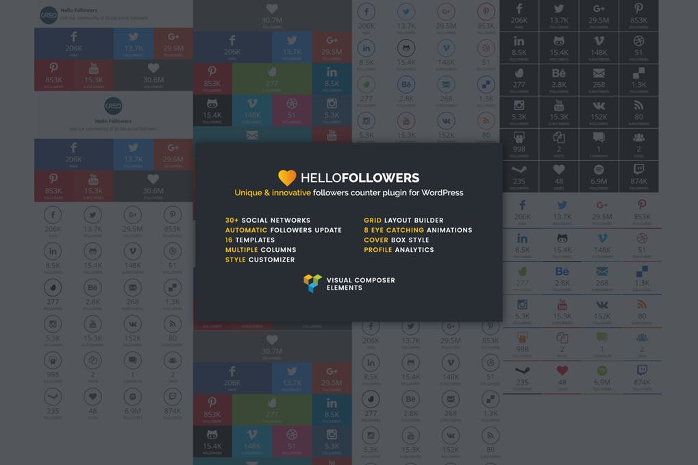 适用于WordPress的独特且创新的追随者计数器插件,可自动以吸引人的方式显示您社交网络中的追随者/粉丝/订阅者。直接从您的站点攻击新关注者从未如此简单。