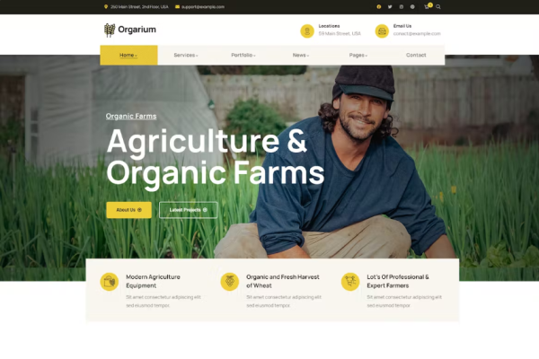 Orgarium – 农业和有机农场 WordPress 主题。这不仅仅是普通的 WordPress 主题,它为农业和有机农场带来了柔和干净的专业精神。这些设计在每一页上都结合了创意和简单性。这个 WordPress 主题适用于所有农业和有机农场网站。