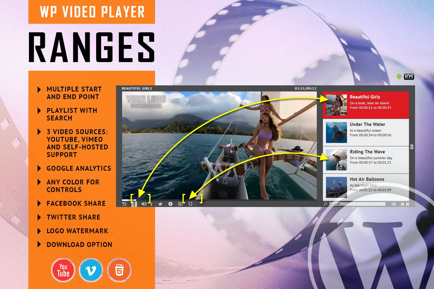 - 视频的时间间隔 -您可以在播放器播放列表中定义正在播放的视频的时间间隔。