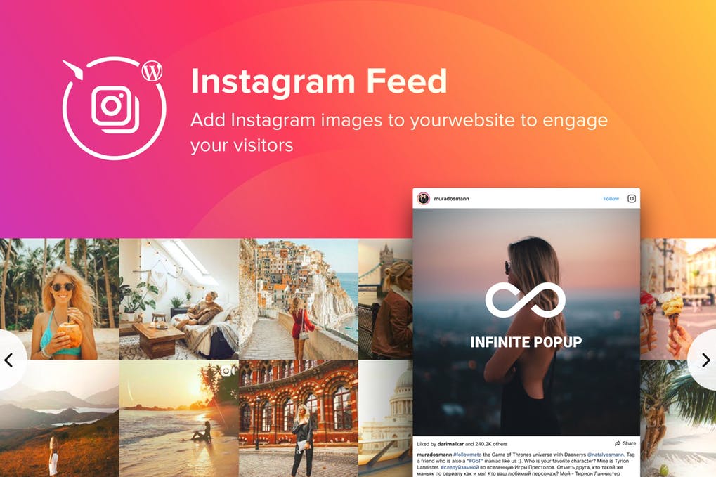 通过我们的插件获得新的Instagram用户。在弹出窗口中打开您的图片时,您的网站访问者将看到您可点击的个人资料图片。任何喜欢您的供稿的人都可以轻松访问您的Instagram个人资料并关注您。